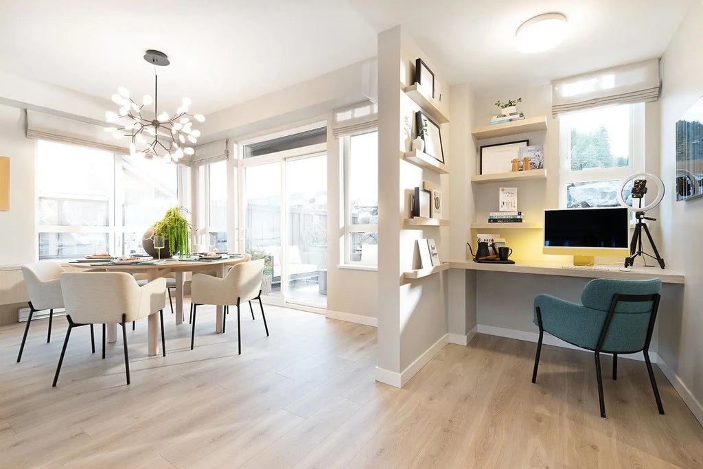 Live surrounded by nature at Terrain by Polygon, a collection of Mountain Modern townhomes in Squamish's Garibaldi Springs community. This bright 3 bedroom + flex, 2.5 bathroom corner home offers 1,545 sq. ft. across three levels. The main floor is designed for connection, with an open kitchen, dining and living area, plus a generous kitchen island with built-in storage. Upstairs, there are three spacious bedrooms, including a main bedroom with a walk-in closet and spa-inspired ensuite, complete with dual sinks. Enjoy high-end finishes, including engineered stone countertops, stainless steel appliances, overheight ceilings, TELUS SmartHome features for enhanced livability, and an efficient heat pump heating and air conditioning system.