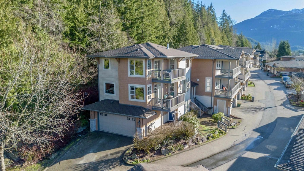 Rare end-unit townhome in Seasonview with panoramic views and exception natural light. Windows on three sides create a bright, duplex-like feel with stunning outlooks to the Tantalus Range, Sky Pilot, and Howe Sound. The upper level features a spacious primary suite with private view deck, dual walk-in closets, and a spa-style ensuite with soaker tub, seperate shower, and mountain-view window. Two additional bedrooms include generous closets, one with ocean and mountain views and a cozy sitting nook, plus a renovated full bath. The main floor is ideal for entertaining with a double-sided fireplace, large U-shaped kitchen, bonus sitting area overlooking green space, powder room, and BBQ deck. Downstairs offers a flexible 4th bedroom/mudroom with exterior access, oversized laundry/storage.