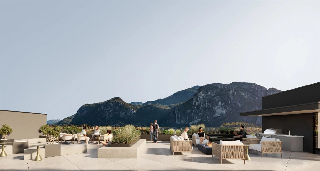 Arte introduces a modern wellness focused lifestyle in downtown Squamish with curated interiors, integrated appliances and terrazzo style flooring throughout. Thoughtful features include in suite laundry and built in gear storage with bike and ski racks. Floor plan 3C offers a spacious three bedroom layout with generous living areas and a well designed flow that supports both everyday comfort and family living. The rooftop features panoramic views of the Stawamus Chief along with dining spaces, BBQ, a pizza oven and a Scandinavian inspired wellness retreat with sauna and cold plunge. Additional amenities include a co working space, social lounge, fitness studio, dog wash and bike wash, all steps from parks, trails, shops and everyday essentials offering long term value in a growing market.